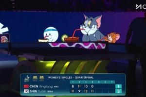体育资讯04月04日讯 中国澳门乒乓世界杯女单1/4决赛,陈幸同对阵韩国选手申裕斌。
