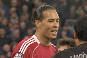 体育资讯4月15日讯 利物浦vs巴黎上半场,范戴克门前补射被马尔基尼奥斯极限铲球封堵,起身后范戴克对同行点头称赞,口型似乎在说“That's nice!”