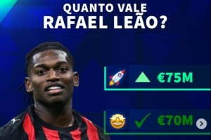 莱奥当前身价为7500万欧,根据德转社媒信息,莱奥的身价可能增加至7500万欧,可能保持不变,也可能下降至6500万欧或者6000万欧。